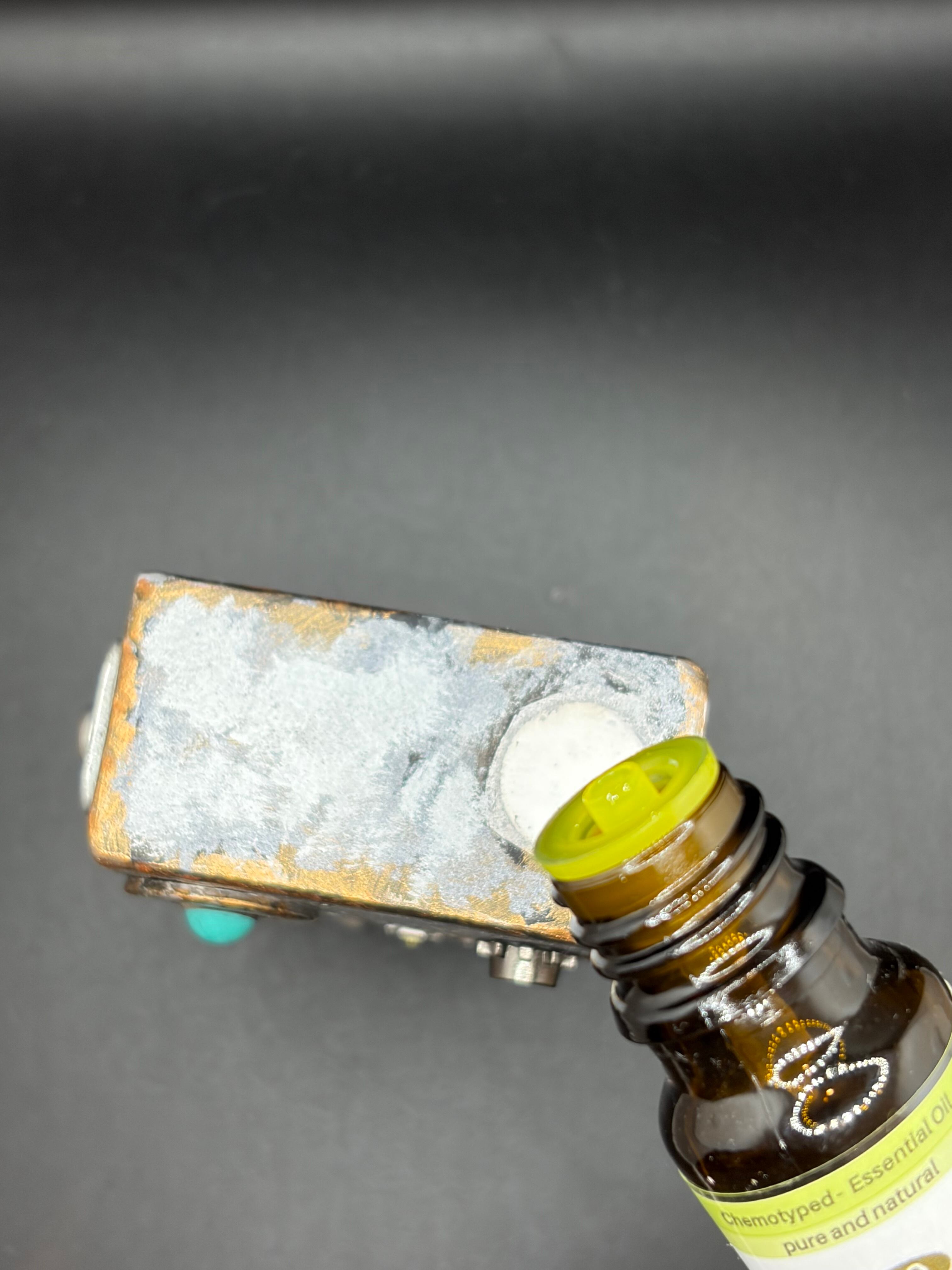 アロマ(香り)を垂らす部分は、頭上の白いアロマストーン(石膏)の位置となります。